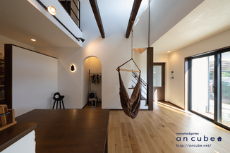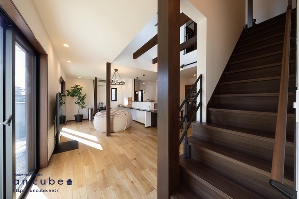 吹き抜けのある開放的なLDKが印象的なお家に。