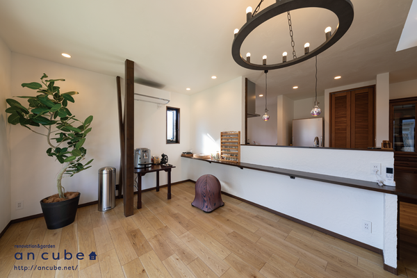 自然光がたっぷり入り、明るく気持ちの良いLDK。元々和室2部屋だったとは思えない空間となりました。
