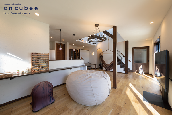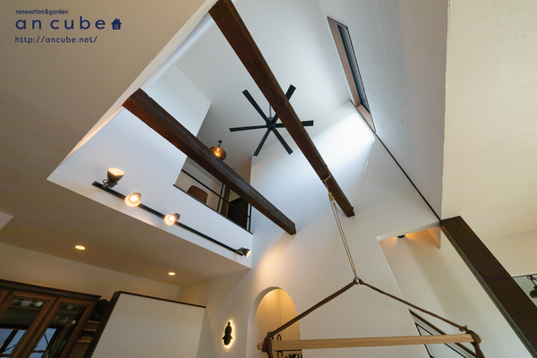 明るく開放的な空間となり、2階部分にはこだわりの照明をセットしました。