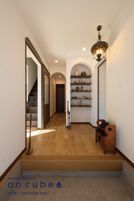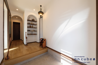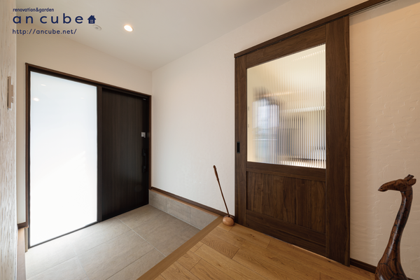 お気に入りの照明や小物がある玄関。一見シンプルですが、こだわりの詰まった玄関となりました。